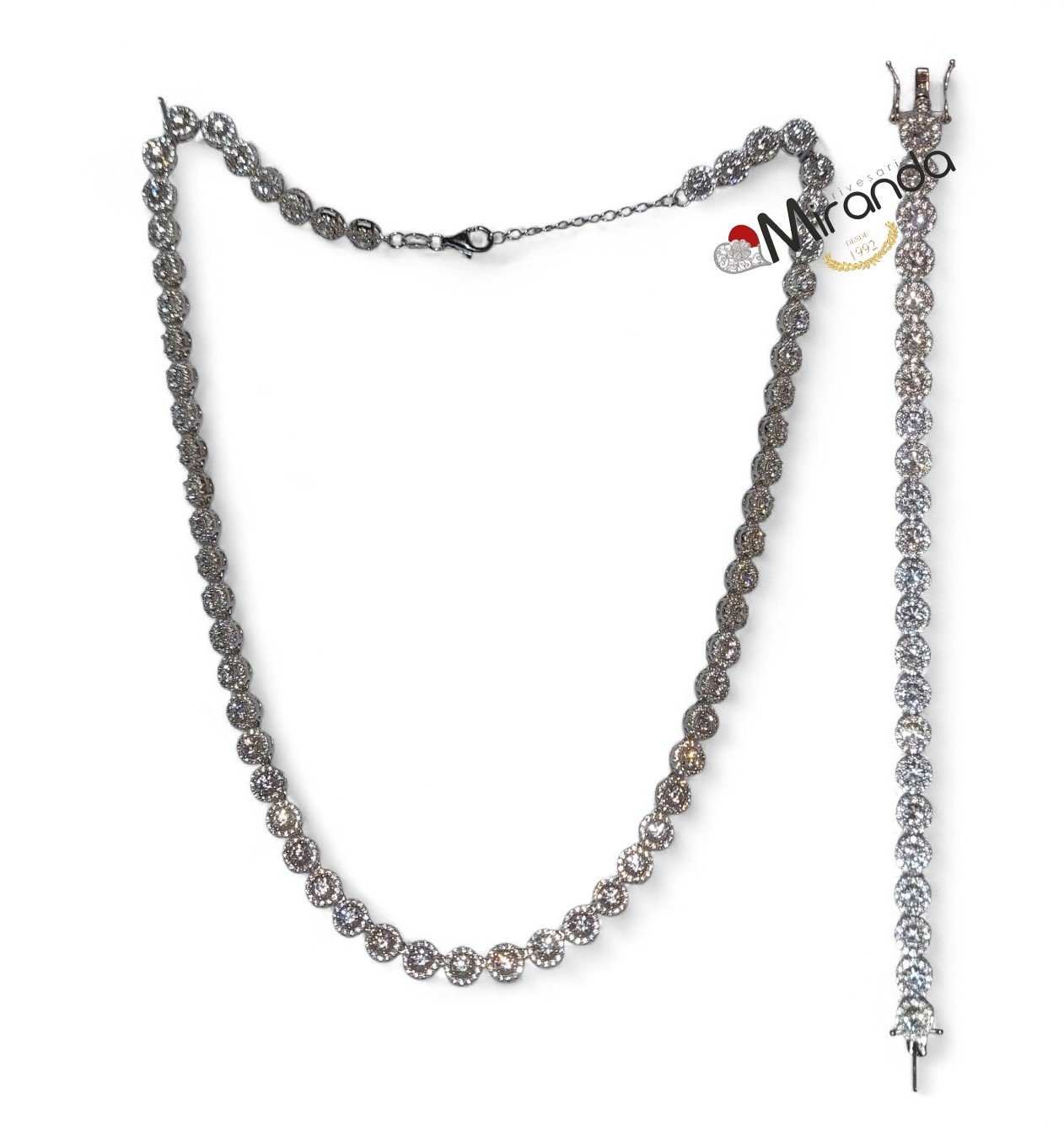 Conjunto Colar e Pulseira de Prata com Zirconias